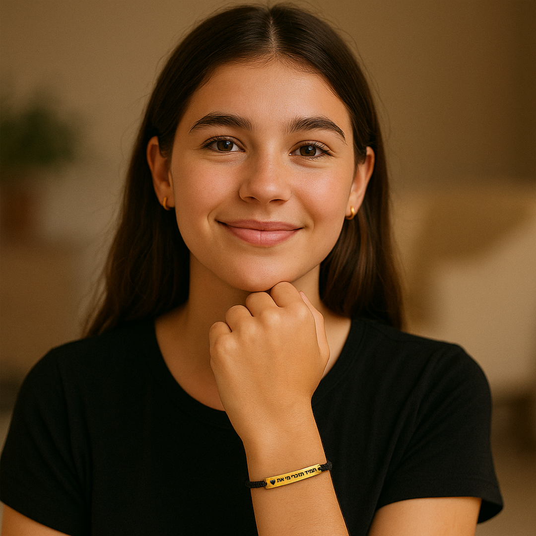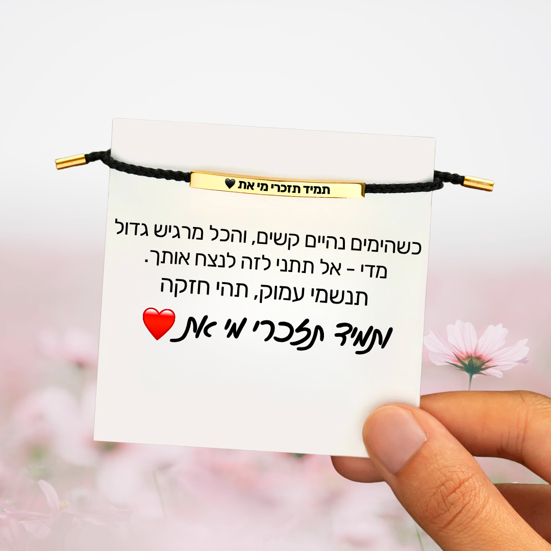 ✔️ צמיד מעוצב עם חריטה: “תמיד תזכרי מי את”.