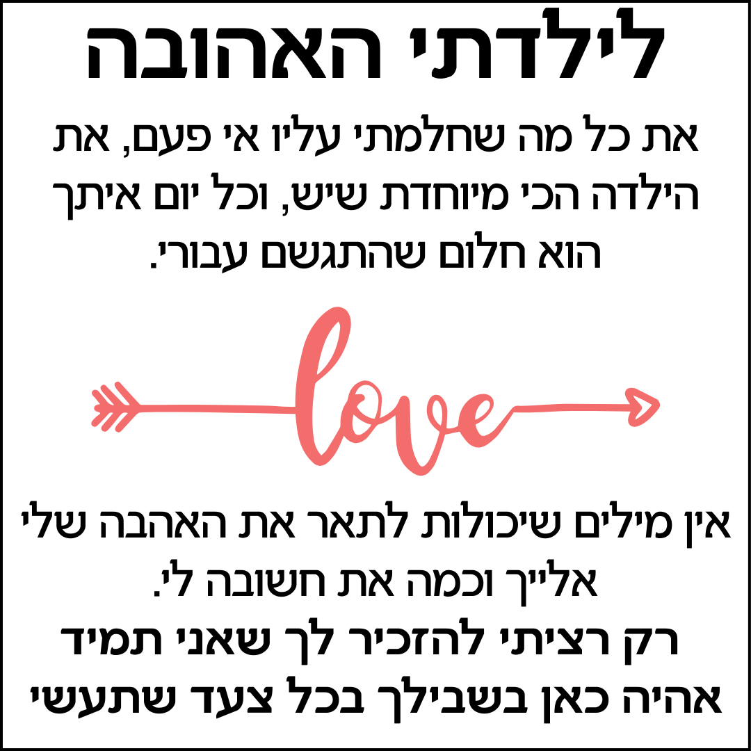 כרטיס הברכה המצורף לשרשרת הוא לא רק תוספת – הוא מסר מרגש שמחזק את הקשר ביניכם ונותן לילדה תחושת ביטחון ואהבה אמיתית.