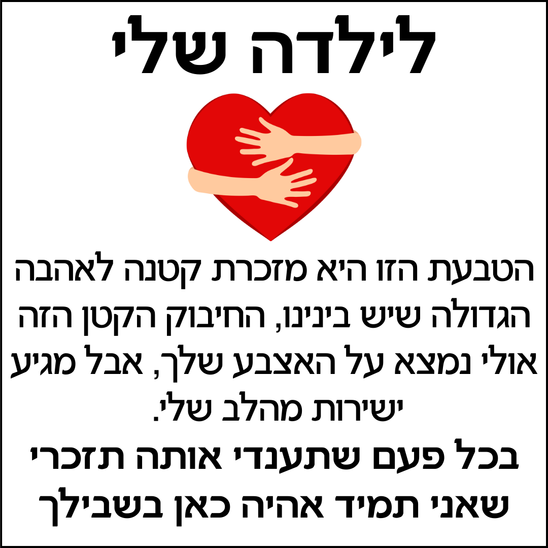 טבעת החיבוק שלנו היא מתנה ייחודית שנועדה להזכיר לילדה שלך שהאהבה שלך תמיד לצידה.