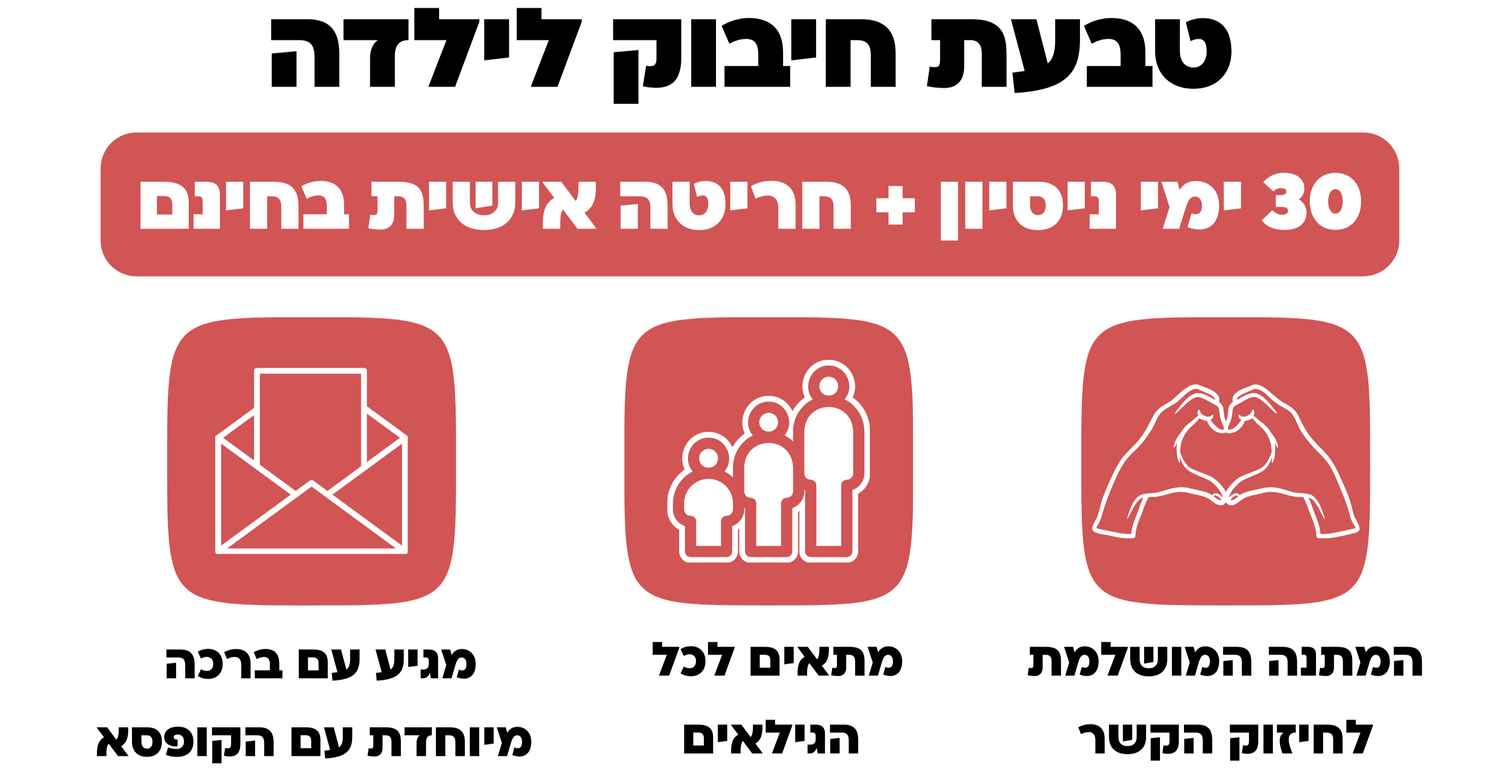 כרטיס הברכה המצורף לטבעת החיבוק הוא לא רק תוספת – הוא מסר מרגש שמחזק את הקשר ביניכם ומעניק לילדה תחושת ביטחון ואהבה אמיתית.