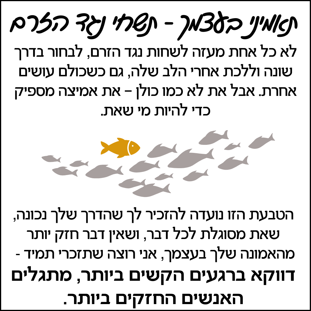 הכרטיס המצורף לטבעת הוא לא רק תוספת – הוא יתן לה תחושת ביטחון ואמונה עצמית.